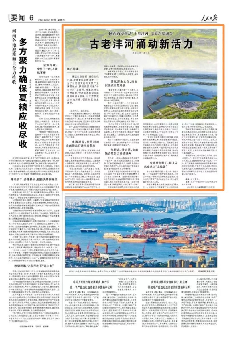 人民日报刊发报道《陕西西安推动“十里沣河”文旅深度融合 古老沣河涌动新活力》