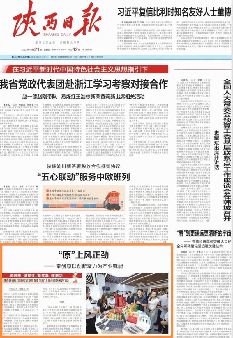 媒体团此次调研采访的所见所闻,将在陕西日报要闻版“学思想、强党性、重实践、建新功”栏目陆续呈现。群众新闻网、三秦网、西部法制传媒网等也将在网站首页、客户端首屏开设“陕西日报社‘创新驱动发展看秦创原’全媒体调研采访行动”专栏,推出话题类、互动式报道,让更多人了解秦创原,了解秦创原总窗口。
