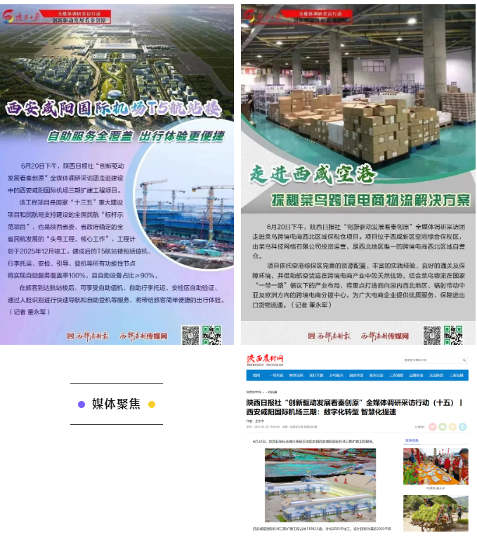 除了了解西咸新区“三器”建设情况,采访团还来到空港新城采访了西安咸阳国际机场三期项目和陕西西咸空港综合保税区建设运营情况,近距离感受秦创原临空产业聚集区和开放合作示范区的创新魅力和产业实力。“这里已经启用西咸新区人工智能产业协同中心,中南高科•西安临空产业港成功开园并获市小微企业创业创新基地认定”,空港新城相关负责人介绍说,“我们积极布局产业园区,汇聚各类科技创新要素,打造临空科创快速发展的肥沃土壤,为科创企业提供长周期、全方位专业服务和良好的环境。”