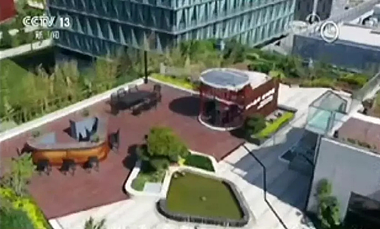 用绿色植被代替硬化的城市路面,是海绵城市的一大理念。在沣西新城许多建筑物的楼顶,建有被称为“屋顶花园”的绿色植被带,10%-20%的雨水在楼顶绿化带存蓄下来,多余的雨水会沿管道汇入楼下雨水花园。