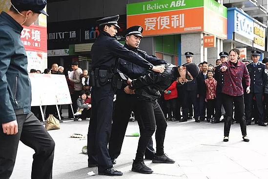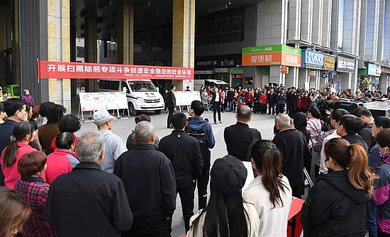 3月22日上午,随着一阵急促的警笛声响起,一场扫黑除恶“快闪”活动在西咸新区沣东新城后卫寨地铁口上演。