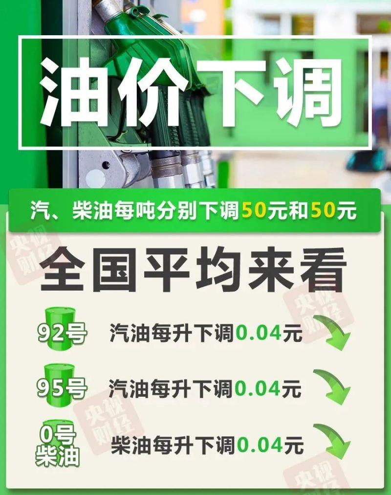 0号柴油每升下调0.04元。