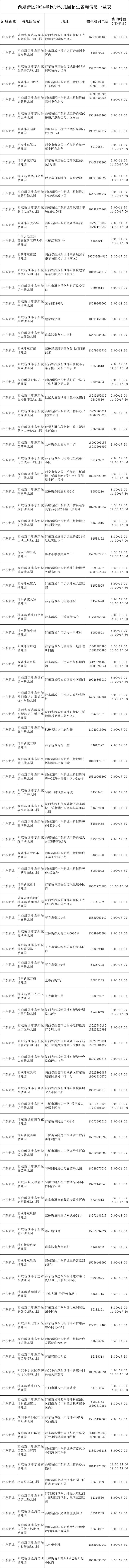 西咸新区2024年秋季幼儿园招生咨询信息一览表