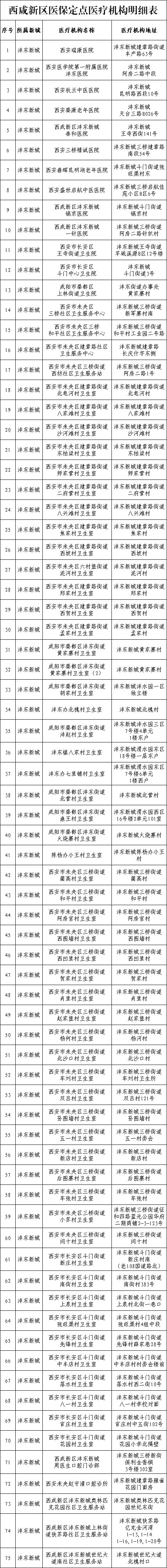 西咸新区医保定点医疗机构明细表(不含三级医院)