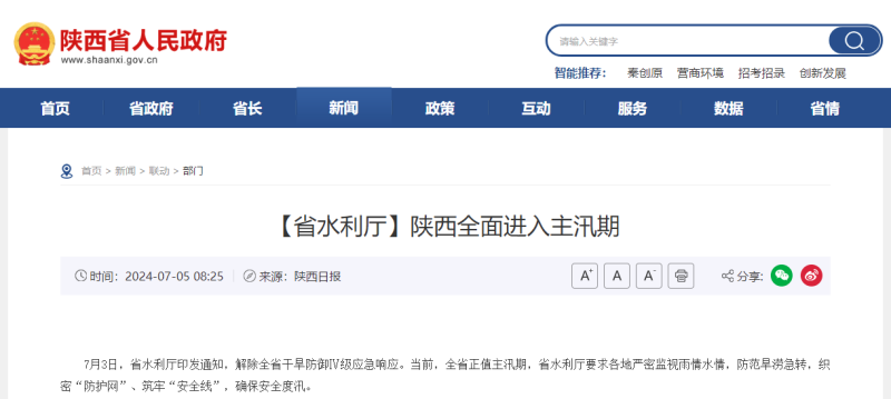 7月3日,省水利厅印发通知,解除全省干旱防御Ⅳ级应急响应。当前,全省正值主汛期,省水利厅要求各地严密监视雨情水情,防范旱涝急转,织密“防护网”、筑牢“安全线”,确保安全度汛。