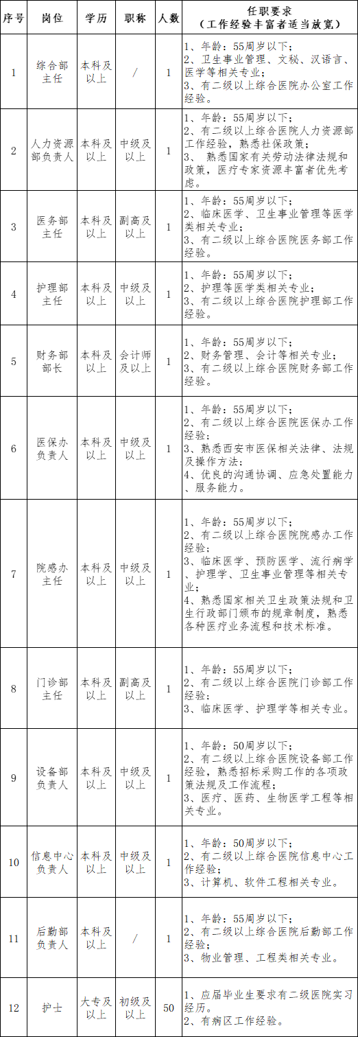 具体要求详见文末《西安市人民医院西咸院区公开招聘需求一览表》。