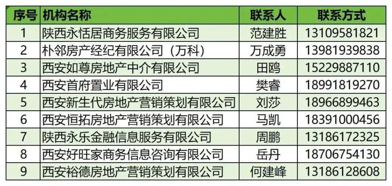 第二批参与西安市住房“以旧换新”活动的房地产经纪机构名单