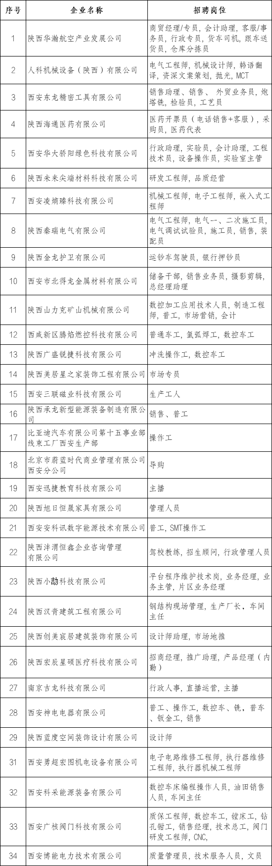 招聘企业及岗位名单