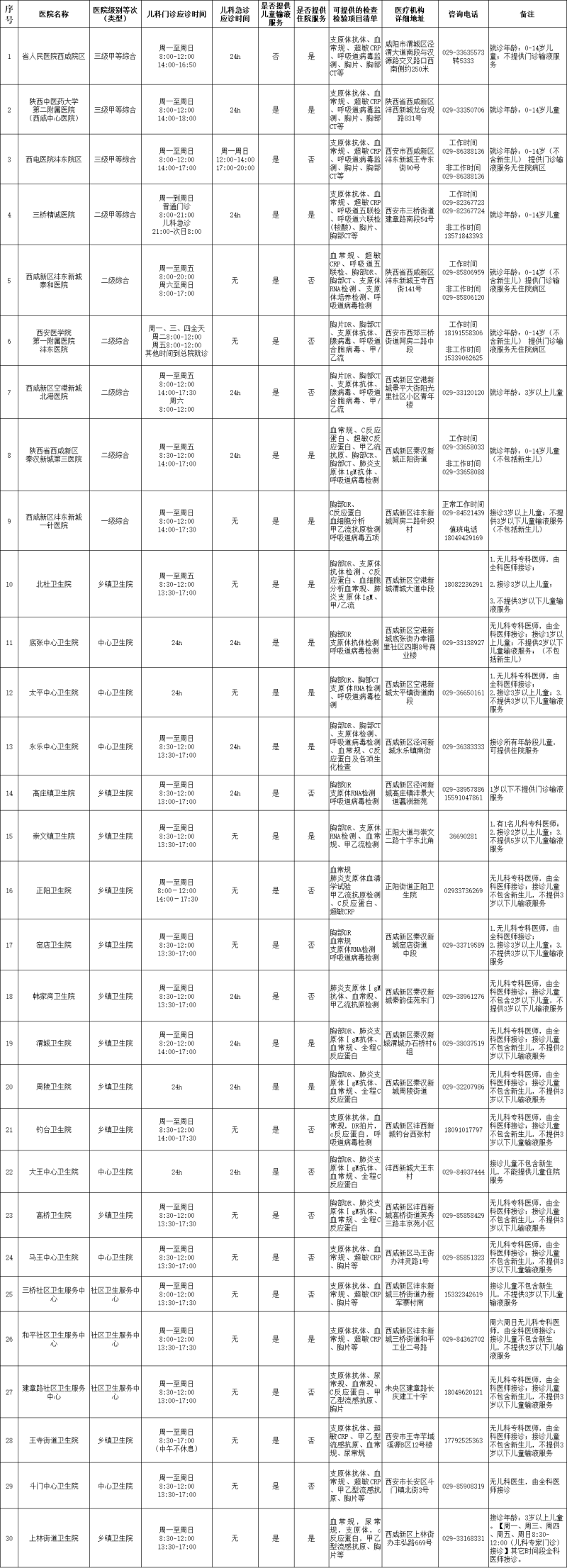 西咸新区医疗机构儿科诊疗服务元旦及春节期间门诊服务信息公示