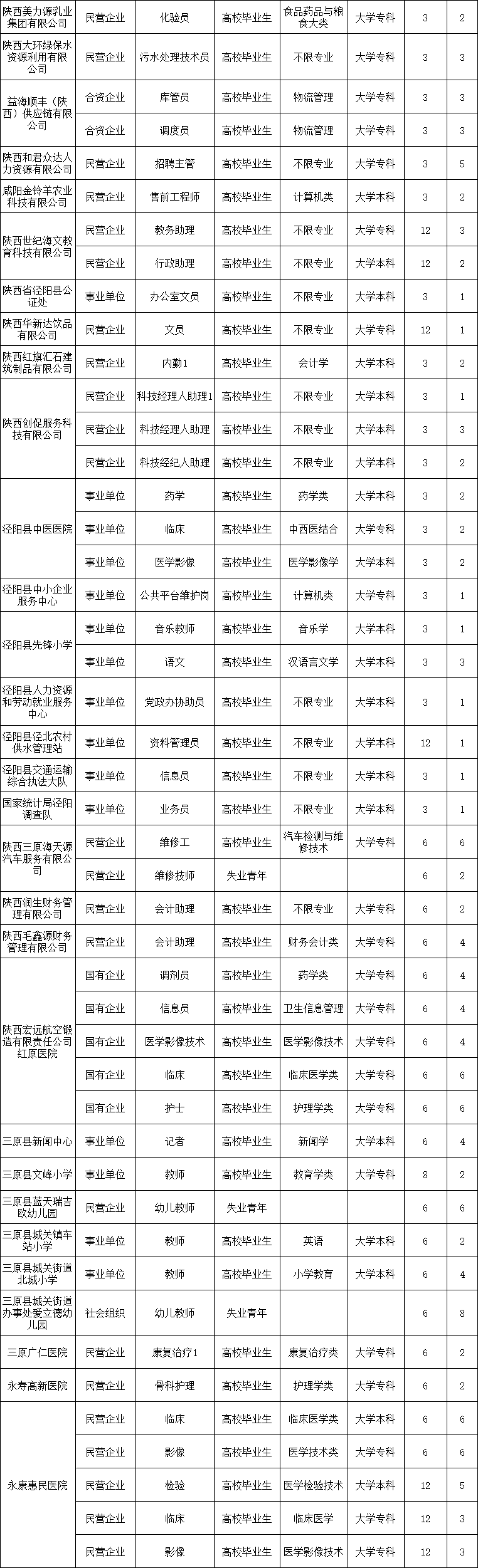 2024年西安-咸阳一体化第一批企业用工岗位