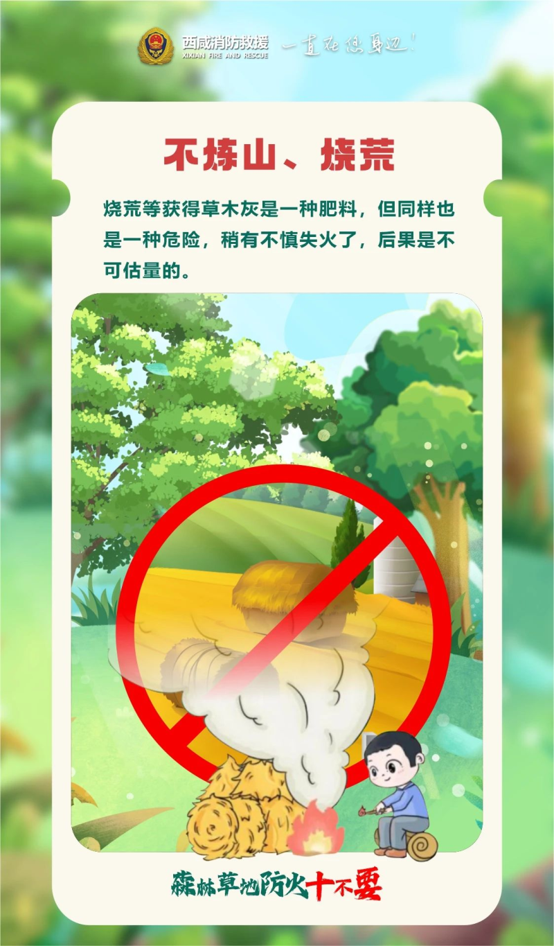 春回大地,万物复苏,然而,天干物燥的气候条件,却使得春季成为火灾高发期,森林草原更是重灾区,一旦失火,将带来不可估量的损失,为了防范此类火灾的发生以下安全事项请注意。