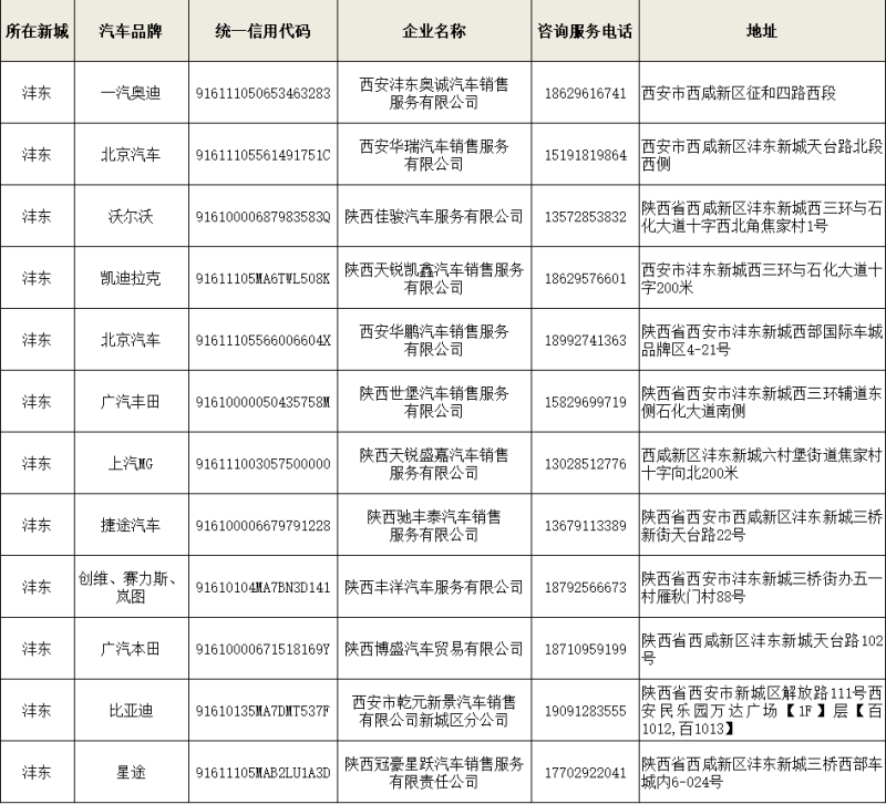 西咸新区2025年新能源汽车消费补贴参与企业名单(第二批)