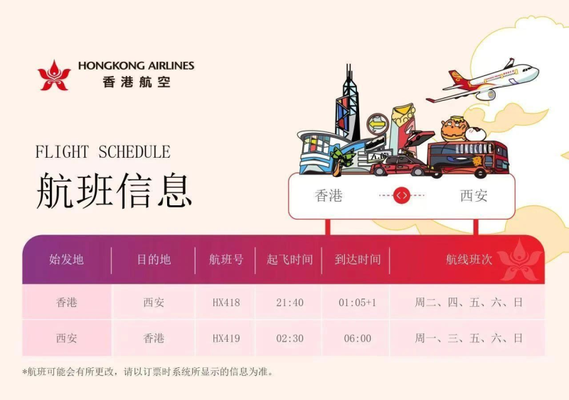 7月18日起,香港航空将开通往返香港与西安的直飞航线,新航线计划每周运营五班,为西安及周边地区旅客前往香港以及香港旅客便捷探访古都西安架起一座高效的空中桥梁。