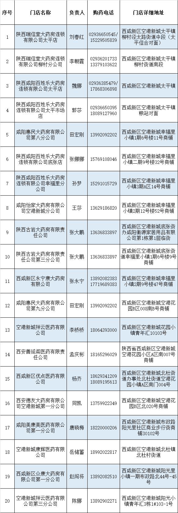 西咸新区疫情期间药品配送信息公示表