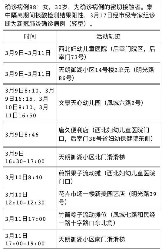 3月17日0-24时,我市新增4例本土确诊病例(均为轻型),均在集中隔离发现。现将主要活动轨迹公布如下(未公布的时间段尚未发现有公共场所活动轨迹):