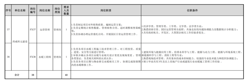 本次集团公司及二级公司面向社会公开招聘共38个岗位,计划招聘40人(管理岗29人,辅助岗11人)。其中,集团本部16个岗位16人,二级公司22个岗位24人。