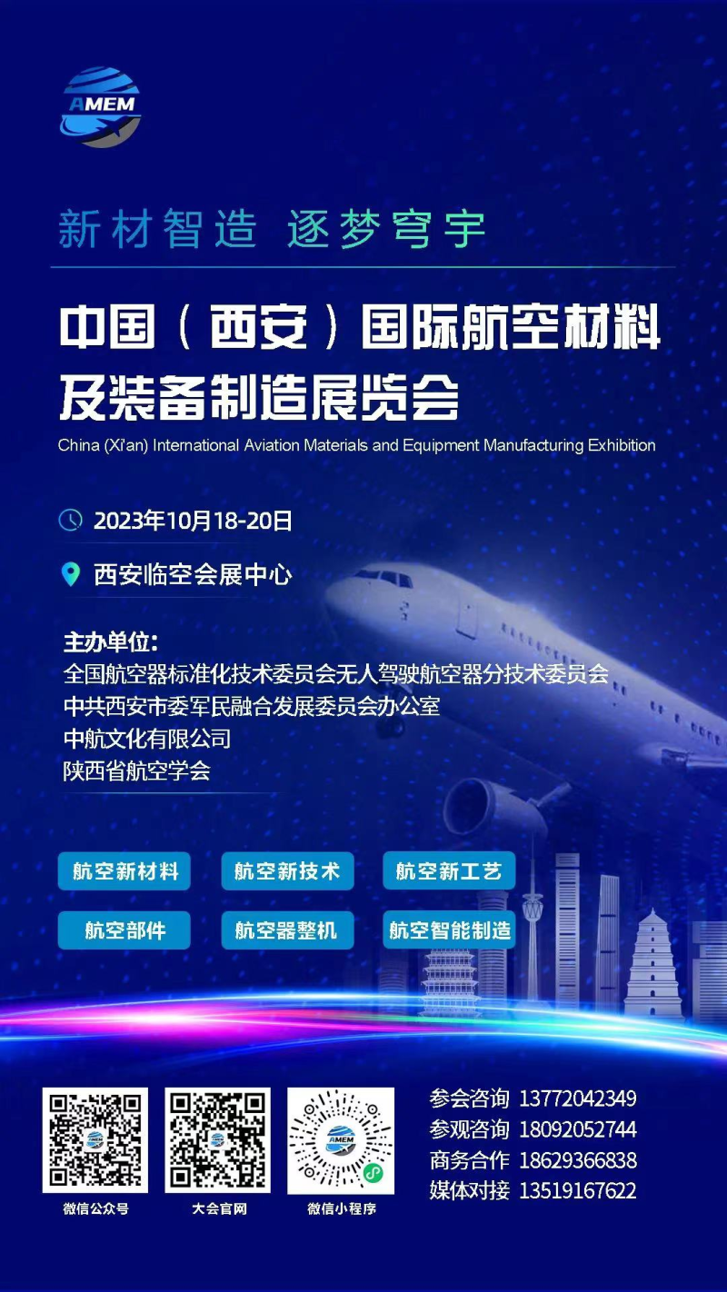 10月18至20日,2023中国(西安)国际航空材料及装备制造展览会将在西安临空会展中心盛大开幕。