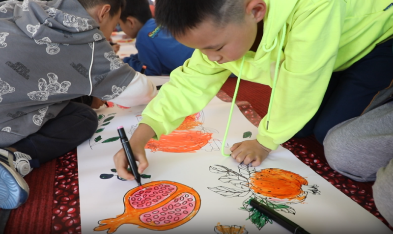 设计石榴手卡、石榴玩偶……同学们以“石榴”为研究对象,在老师的引导下开展探究,并学习用诗歌表达对石榴的喜爱和赞美,用画笔描绘石榴可爱的模样,还学习研究石榴的生长,了解果实内部的结构和营养价值。