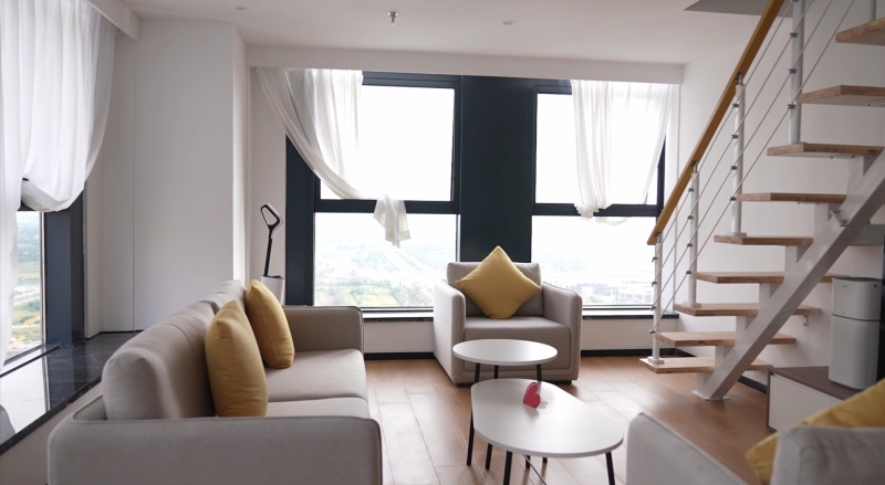 公寓位于泾河新城正阳大道与崇文二路交汇处东南角的泾河·荟智广场,主要由LOFT和综合B楼两部分组成,房间共481套,面积约34000平方米,包含健身区、会客区、娱乐区、休闲区和室内篮球场、羽毛球场等功能区域。