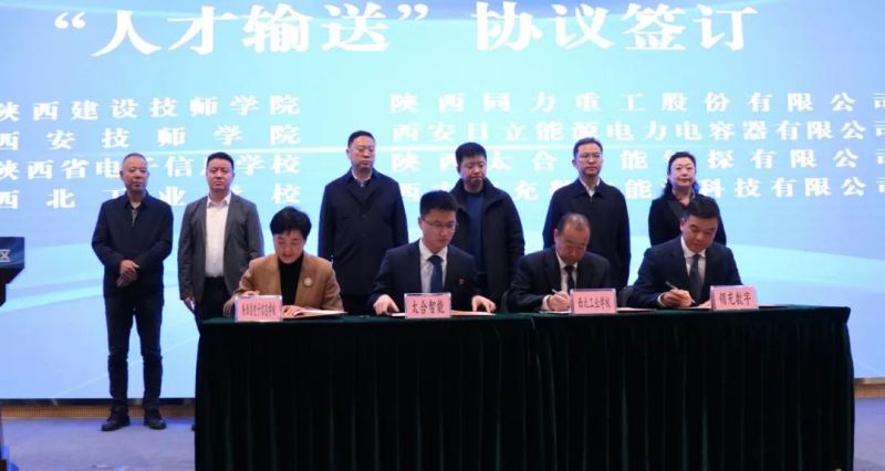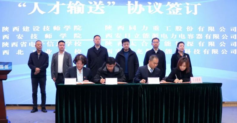 陕西同力重工、西安日立能源、陕西太合智能钻探、西安领充数字能源与陕西建设技师学院、西安技师学院、陕西省电子信息学校、西北工业学校签订校企合作“人才输送”协议,将围绕产业园区发展需要,征集企业技能人才需求,发挥秦创原人才大市场平台优势,加强供需双方有效对接匹配,为园区发展提供高水平的技能人才。