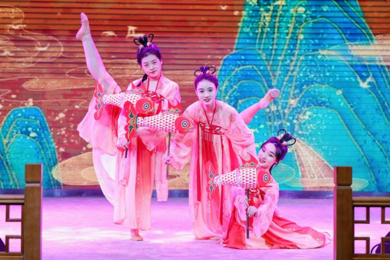 巾帼不让须眉的经典戏曲桥段《穆桂英挂帅》、富有少女柔情唯美诗意的舞蹈表演《春闺梦》、精彩绝妙的川剧变脸、充满陕北民俗风情的安塞腰鼓、技艺精湛、令人拍手惊奇的长嘴壶茶艺表演和传统蹬技表演……