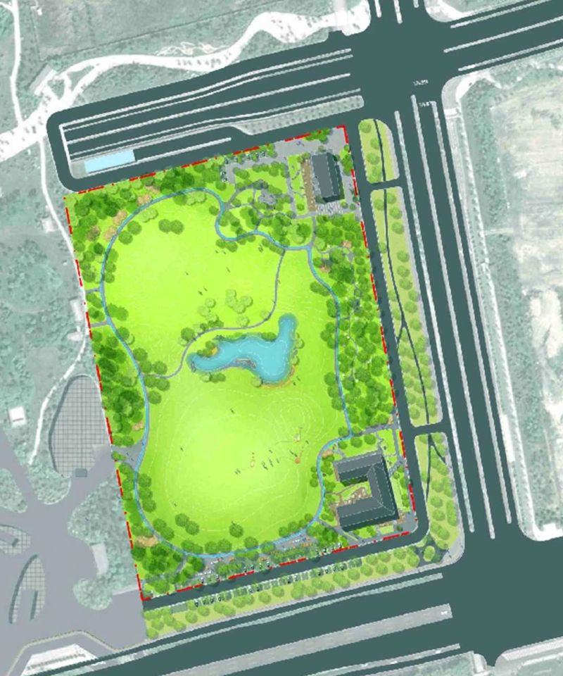 陕历博秦汉馆以北,通过绿化景观提升,建成大片开放式草坪绿地。在保留现有地形地貌基础上,增设游览步道及休息座椅等便民服务设施,与博物馆建筑群形成对景。