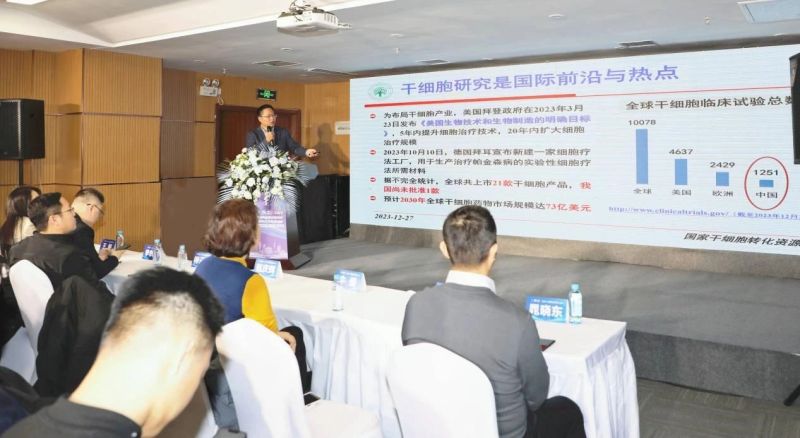 论坛中,国家干细胞转化资源库存储部负责人赵庆辉教授、沈阳医学院树人国际学院副院长柳云恩教授、德国罗斯托克大学泌尿外科访问学者郑航博士、中国电信陕西公众信息产业有限公司卫健事业部总监李铁成,分别围绕干细胞研究是国际前沿热点、外泌体水凝胶递送系统的构建与应用、干细胞治疗ED的作用机理与突破性进展、干细胞全流程数字化管理建设方案的研发进展与适用场景进行了主旨演讲。