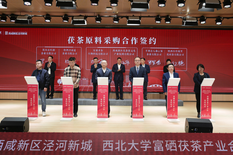 活动现场,安康市、泾河新城、西北大学共同签署了富硒茯茶产业战略合作协议。3家茯茶企业与3家陕南茶企签订了毛茶收购合作协议。