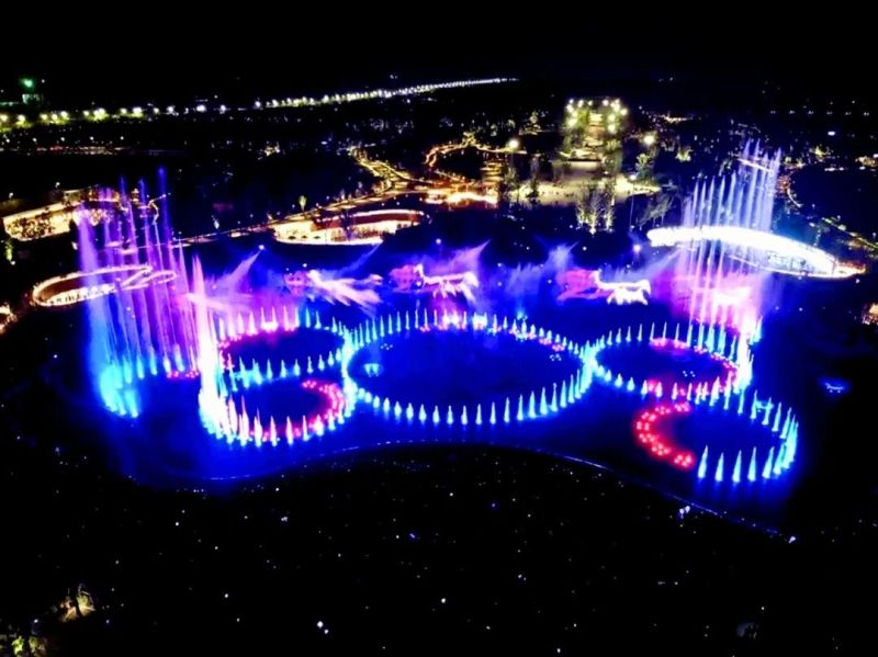 大秦水舞光影秀位于秦汉新城大秦文明园南广场,2019年5月建成开放后,迅速“俘获”市民游客的“芳心”。仅一年时间,累计接待游客突破了500万人次,成为西安新的网红打卡地。