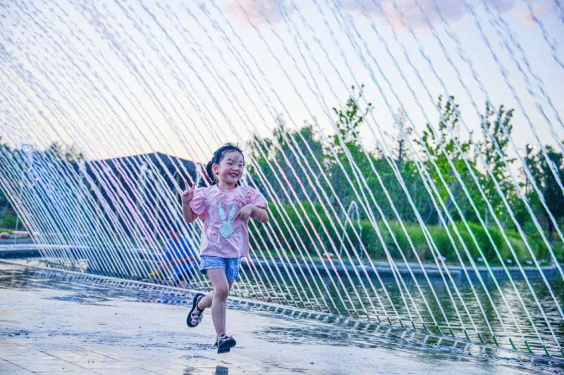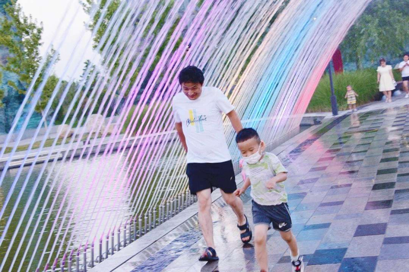 去年11月,大秦水舞光影秀开始进行水幕激光、灯光及水柱管网等维修升级工程,采用了先进数控喷泉、数字灯光设备及全方位智能控制系统。新的播放季,将以全新内容与观众见面。与此同时,在连通秦文明广场6个湖泊组成的水系中,多个喷泉也将全面开放,为游客带来各具特色的赏游体验。武功区附近的“彩虹”喷泉,最受孩子们欢迎。一道道水柱喷涌而起,变成彩虹架在道路上方。天气热的时候,小朋友喜欢在“隧道”里嬉戏玩耍,大人也可以在这里感受清凉。