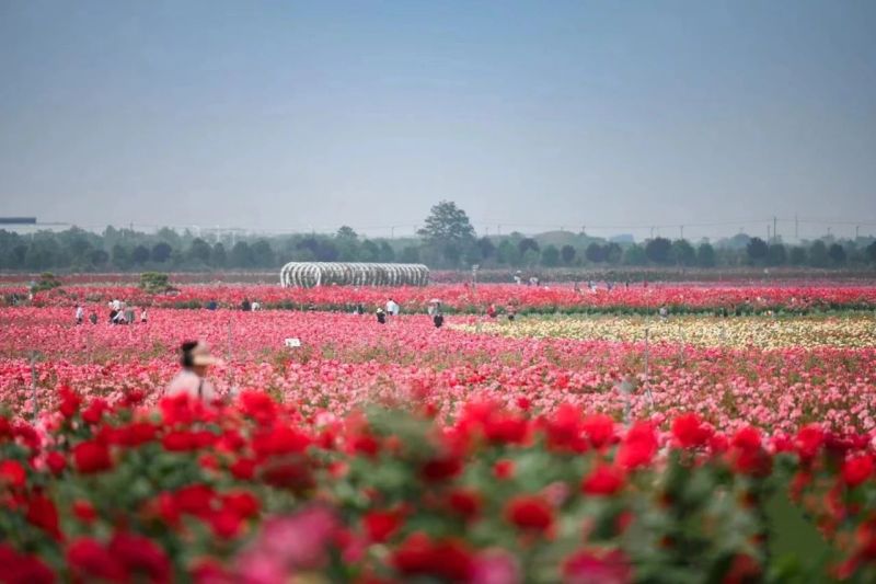 作为著名网红打卡地,云间花境目前正值月季花盛开的最佳时节,300万株月季竞相开放,花香四溢,吸引了大量游客前来观赏。