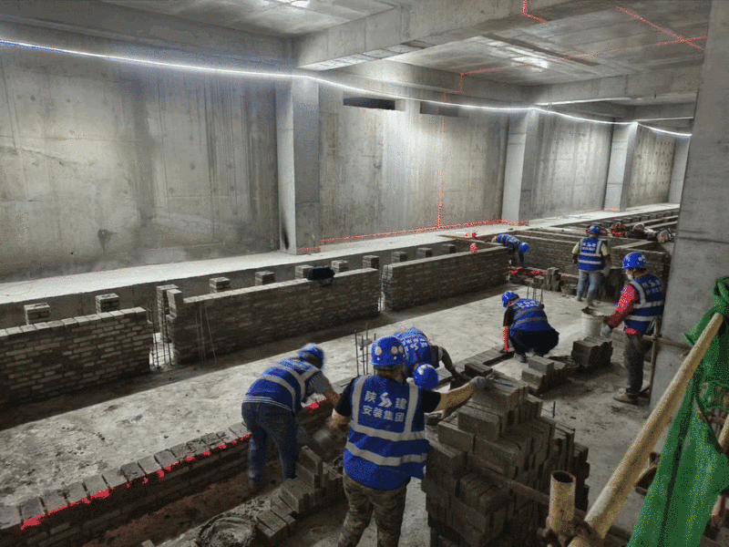 在项目(一期)建设现场,工程车辆来回穿梭,200余名建设者正在各自负责的作业面,进行外幕墙、窗户安装、水电等施工,为今年年底的交付目标全力冲刺!