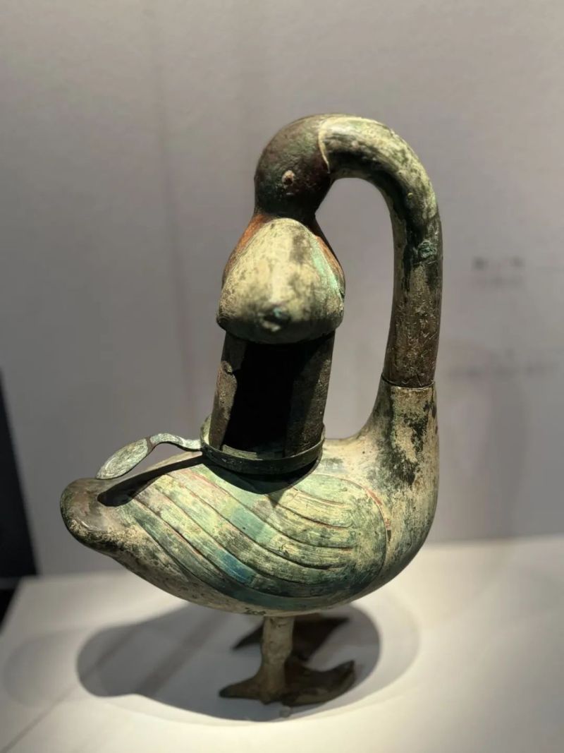 在汉代,像长信宫灯这样具有环保功能的灯具并非个例,秦汉馆展陈的另一件文物雁鱼铜灯也采用了类似的原理。