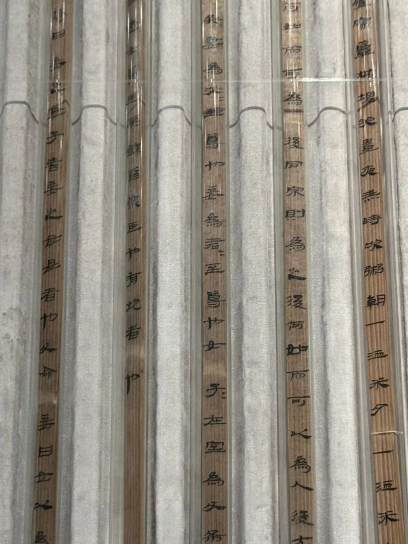 武威磨咀子汉墓出土的王杖诏令简共10枚,材质为松木,简长23厘米、宽1厘米,字迹清晰、次第分明,内容主要是汉代养老敬老、尊礼高年的规定。该简内容丰富,既有尊老养老、高年赐杖的明确命令,也有抚恤鳏寡孤独废疾之人的具体法规,反映了统治者对待老年民众的宽厚、仁爱,具有重要的史料价值,更是不可多得的汉隶书法艺术品。