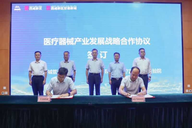 现场,空港新城与陕西省医疗器械质量检验院签订医疗器械产业发展战略合作协议,通过打造一站式服务平台,最大程度向企业提供检验检测便利。同时,与西安先进制造业协会签订先进制造业战略发展合作协议,在产业招商、项目咨询等方面进行合作。