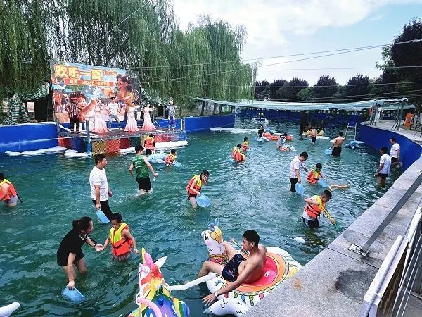 灿烂的星空下,大朋友、小朋友们可以尽情high翻天!绚丽的灯光布置、水上花船演绎、泼水节、篝火晚会……丰富的活动一环扣一环,环环都精彩。狂欢泼水节泼水互动、舞蹈表演、梦幻泡泡、水花飞驰,充满了夏日独有的凉爽气息,为大家带来夏日畅爽。巅峰玩水来这里,绝对不亏!