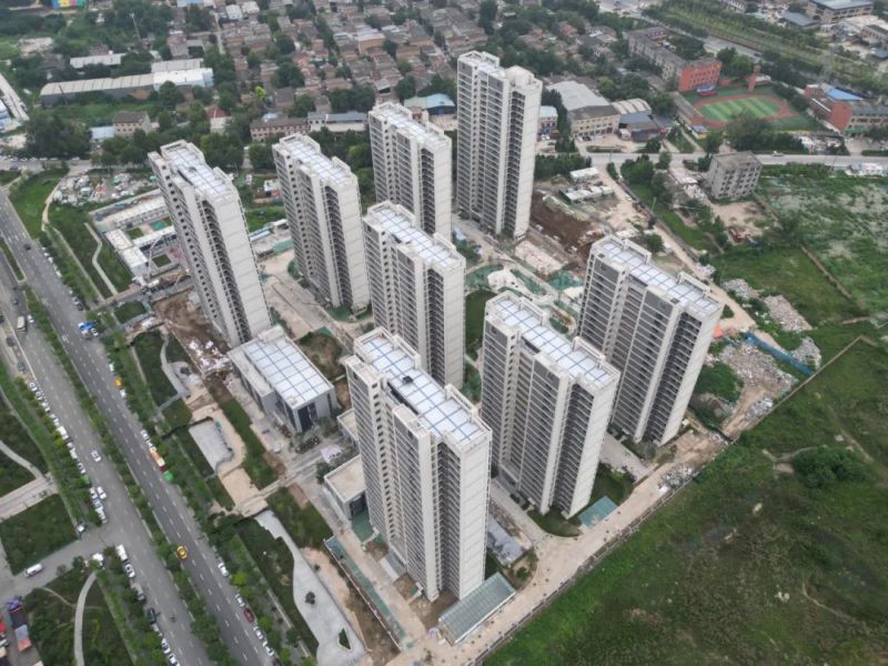 “在施工过程中,我们一手抓质量,一手抓效率,不断优化施工流程,实现施工过程全穿插,同时,设置ALC样板展示区、砌体实测实量展示区,推动项目标准化建设。”项目负责人表示。此外,项目引进了智慧工地大数据平台,采用物联网、大数据和云平台等技术,将工程信息和自动化应用高度集成,以信息化、智能化、标准化手段实现高效管理;积极推行装配式建造等多项绿色施工技术,确保实现绿色节能和环保目标。“目前,两个项目均已基本建成,正在进行室外工程景观绿化、市政配套以及机电安装施工,确保项目于今年年底前高品质建成。”