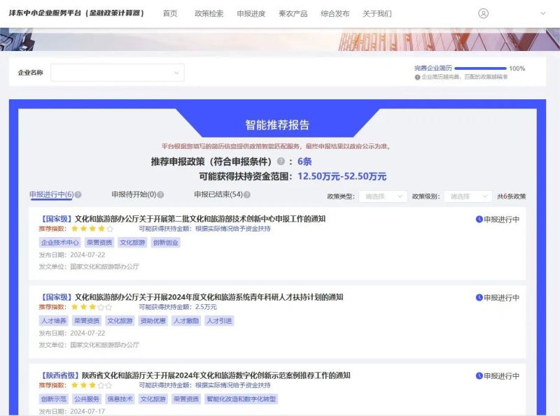 为持续优化营商环境,助力企业转型升级,沣东新城创新推出数字化综合服务平台“金融政策计算器”,为区域广大中小企业提供准确、便捷、高效、安全的政策和金融服务,方便企业一秒智能匹配,一键快速申报。