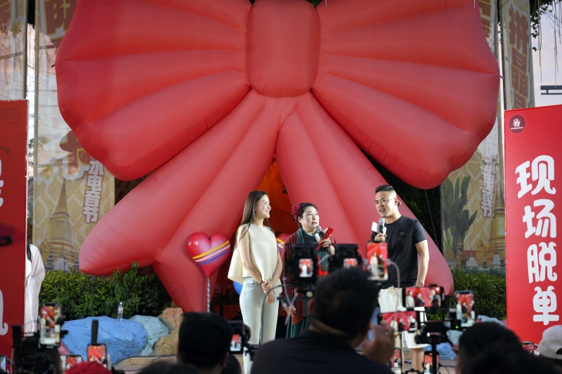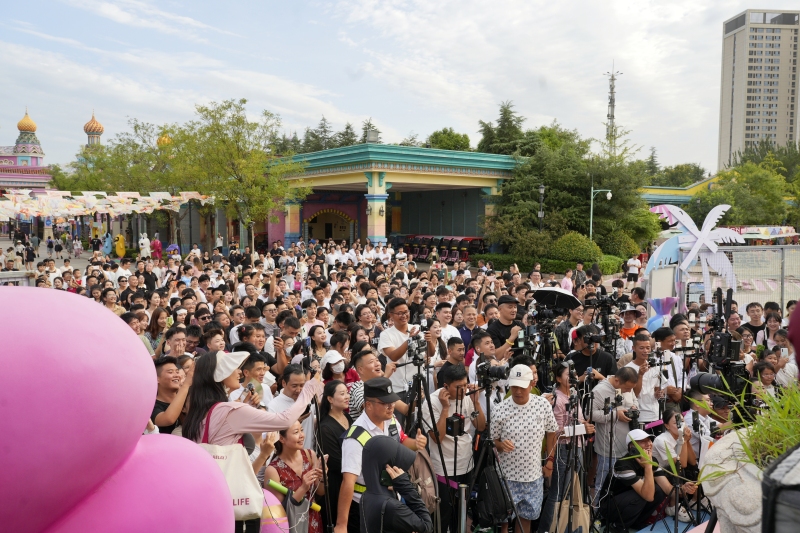 “宝贝们好!今天是七夕,在泾河新城乐华城,我要让有情人终成眷属。”8月10日(七夕节当天),随着音乐响起,身着绿衣红裳,头挽发髻,带着大红花的开封干娘—赵梅登上乐华恒业欢乐世界(以下简称“乐华城”)广场舞台,朝台下热情地打着招呼,观众的呐喊欢呼声也随着她的到来从四面八方涌上舞台。
