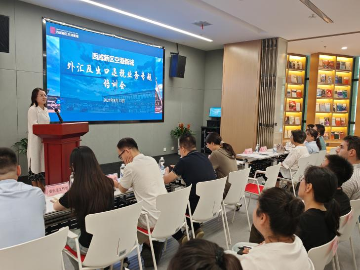 为促进空港新城外向型经济高质量发展,推进对外贸易提质增效,进一步扩大陕西西咸空港综保区功能优势。8月13日上午,空港新城在辖区图书馆举办外汇及出口退税业务专题培训会。邀请国家外汇管理局陕西省分局经常项目处副处长任薇君、科长沈冰、业务负责人张阳及空港税务局税政一科一级行政执法员黄梦怡为企业现场讲解外汇及出口退税业务。沈冰科长、张阳老师分别就经常项目外汇便利化政策、货物贸易核查和企业贸易信贷报告注意事项展开详细讲解,黄梦怡老师介绍了出口退(免)税业务流程。