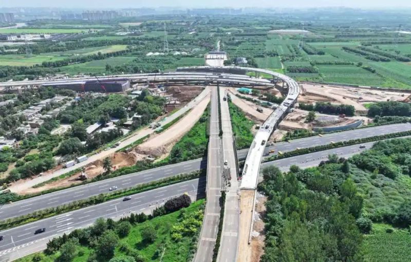 “截至目前,马家堡互通枢纽路基工程、桥梁工程已分别完成60%、85%,箱梁吊装施工预计将于8月底完成。”冯科科表示。