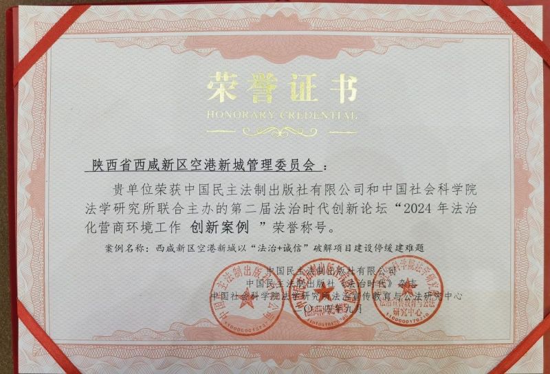 今天,从“第二届法治时代创新论坛”传来好消息,空港新城《以“法治+诚信”破解项目建设停缓建难题》获评“2024年法治化营商环境创新案例”,标志着新城“诚信空港”“法治空港”建设迈入全面推进新阶段。