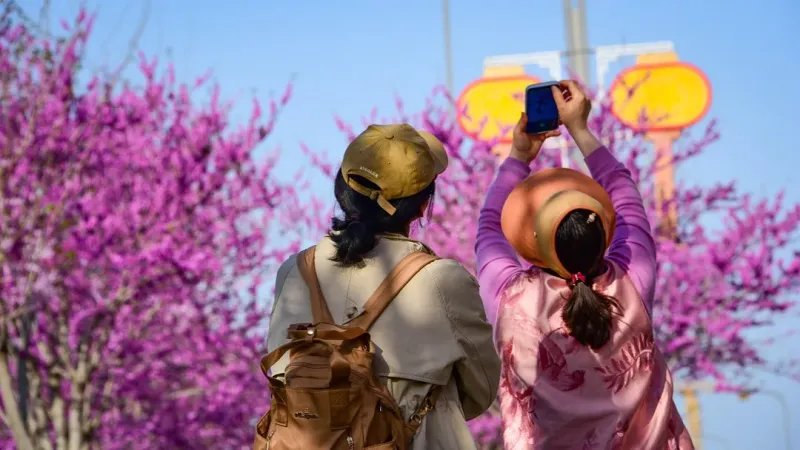 春风掠过,花枝轻摇,香气若有似无地钻进鼻尖,引得路人频频驻足,“看这花海,心情立马敞亮!”