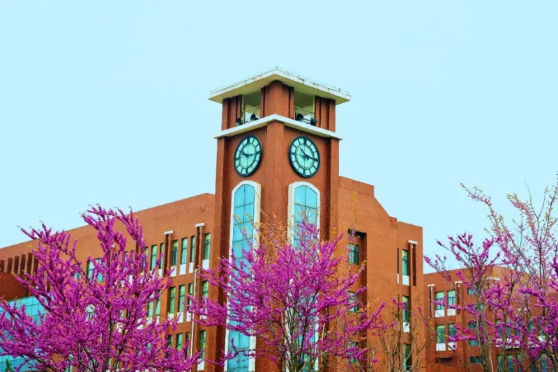 紫荆花期不长,用满树繁花诉说坚韧,正如校徽上那抹紫红,百年风雨未改其志,始终扎根大地,静守一方书香。