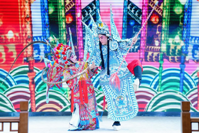 台下茶客举着茯茶,目光在千年时空裂隙间穿梭:秦腔老生甩髯酣畅高唱《金榜题名》,皮影戏《东郭先生》用白幕剪影撕扯出寓言的张力,而川剧变脸大师黑袍翻卷,赤面关公瞬变蓝脸窦尔敦,精彩连连。