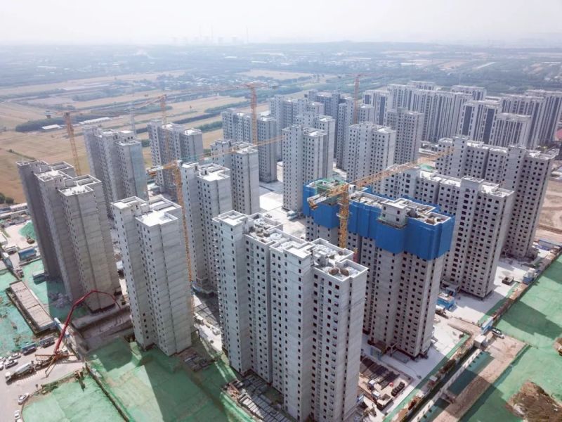目前,12栋住宅楼已全部实现主体结构封顶,正在进行二次结构、室内外装饰装修等施工,现场共有400余名施工人员。其中,1-3#、5#、7-13#楼已完成二次结构施工,6#楼二次结构完成35%,1-3#、7#、9#、11#、13#楼完成窗框安装,3#、9#、11#、13#楼外立面抹灰施工完成17%,线盒、电箱、给排水、风管、消防管道等安装工程整体完成32%。
