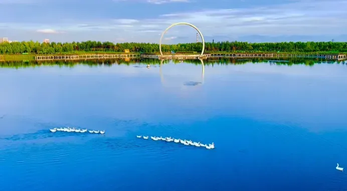 骑行客的御风之梦,亦可在此启航:18公里渭河生态景观带,拥有一条高颜值骑行绿道。沿河堤路穿行,众多湖泊水系如绿宝石散落岸边,一路掠过树影波光,宛如碧海间逐浪,堪称黄金骑行线路。河风拂面,裹挟水汽清凉,开阔视野,尽览四时风华,运动激情与自然野趣完美交融。
