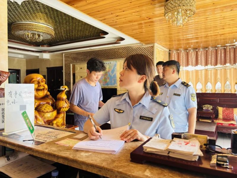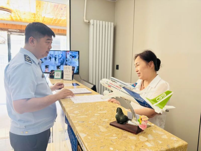 针对机场周边民宿行业,工作人员重点从“门头字号与营业执照是否相符”“店内是否有价格公示”“网络平台定位与实际是否相符”“宣传图片与实际是否相符”“房间数量与网络平台宣传是否一致”五方面进行深入检查。针对发现的问题,现场下发检查整改通知。
