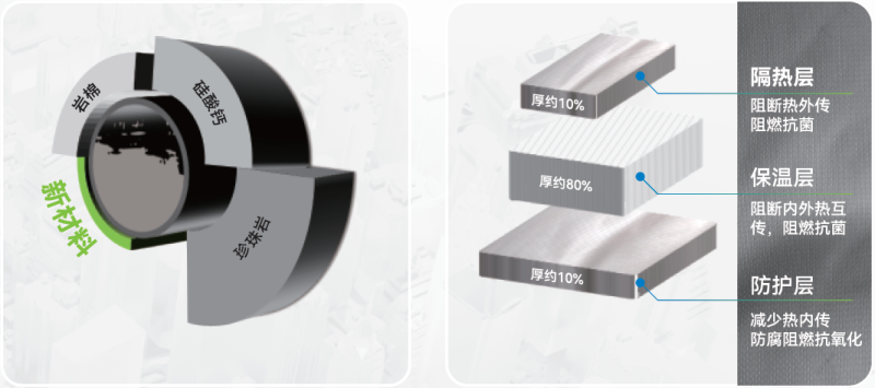 “三层复合护盾”外衣,正是长期以来的研究成果。其研发的新材料采用“隔热层+保温层+防护层”,可从容应对-196℃至1200℃的严苛环境,将设备表面温度精准控制在35℃—45℃之间,节能效率提升40%以上。