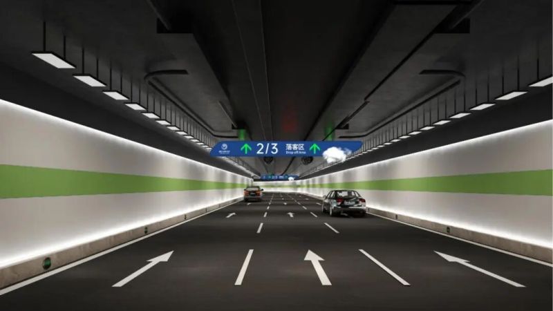 该获奖标识系统所属的空港新城中央商务区(T5站前商务区)市政基础设施项目,坐落于西安咸阳国际机场三期T5航站楼东侧。项目规划建设4.8公里高架桥梁、5.35公里地下环路及15条总长12.42公里的市政道路,核心承载T5航站楼、GTC(综合交通枢纽)与外围交通的旅客集散转换功能,同时为空港中央商务区的长远发展提供关键配套保障。